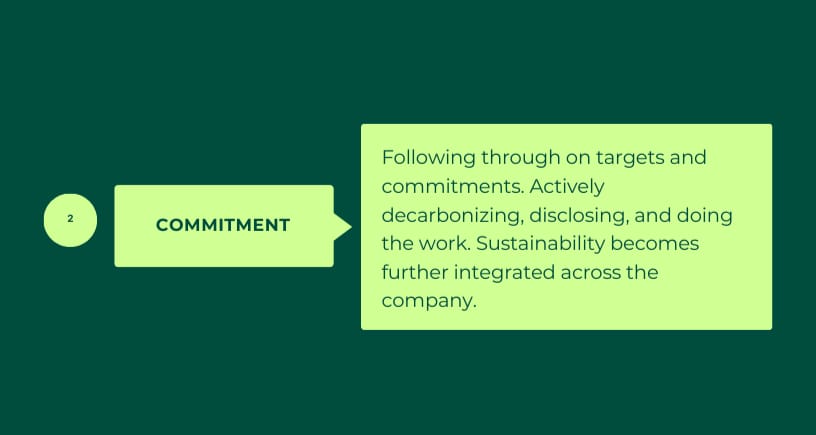 Whether you position your brand as a ‘guide,’ a ‘facilitator,’ or a ‘partner’ is dependent on which stage of the corporate climate journey your target customer is in.